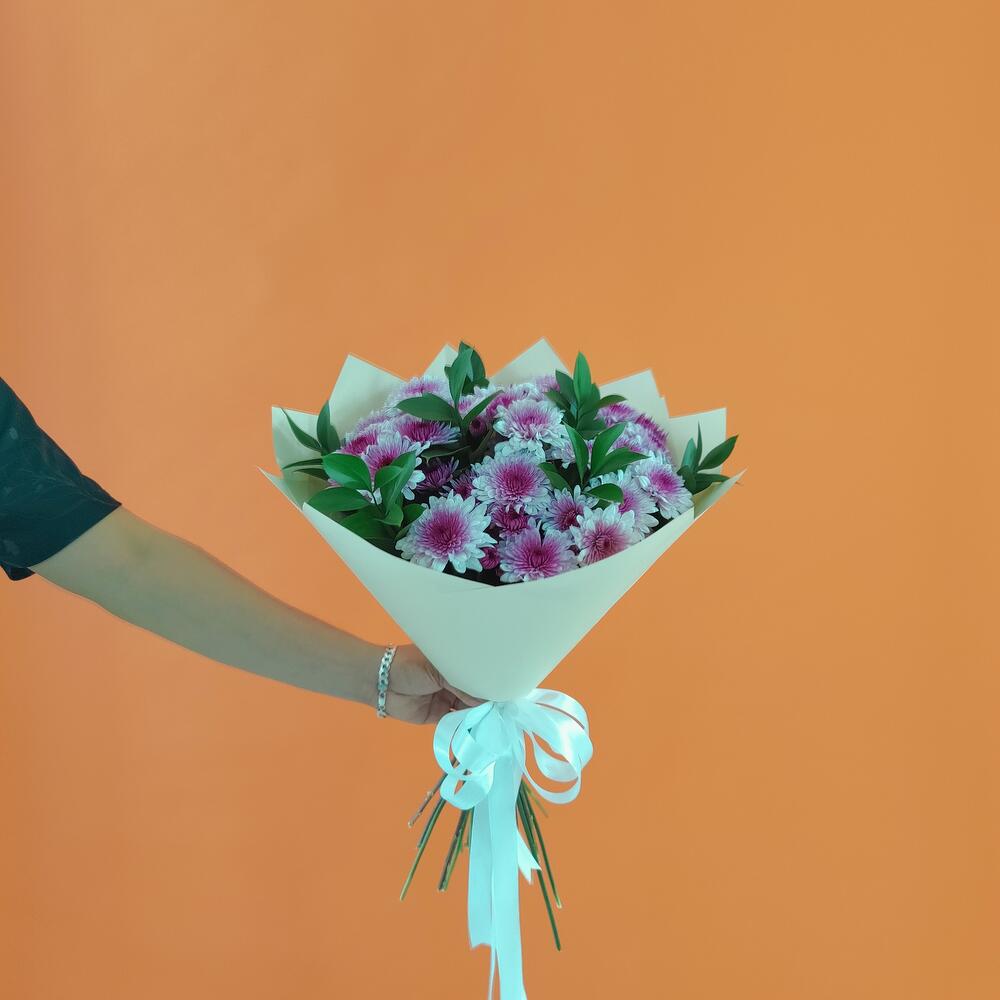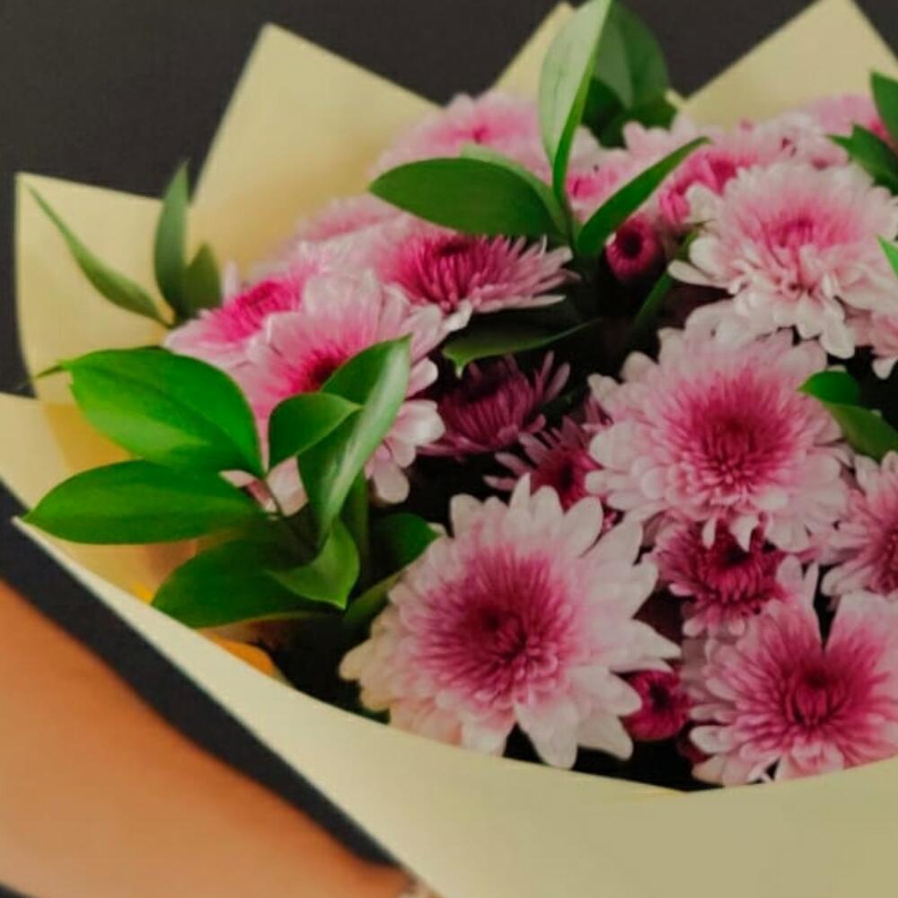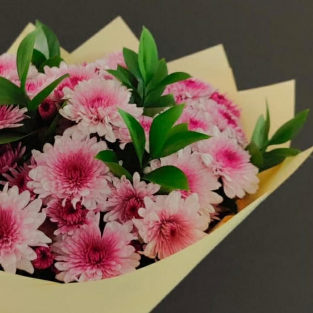 Ruscus - 6 ud. crisantemo doble color rosa - 10 ud.