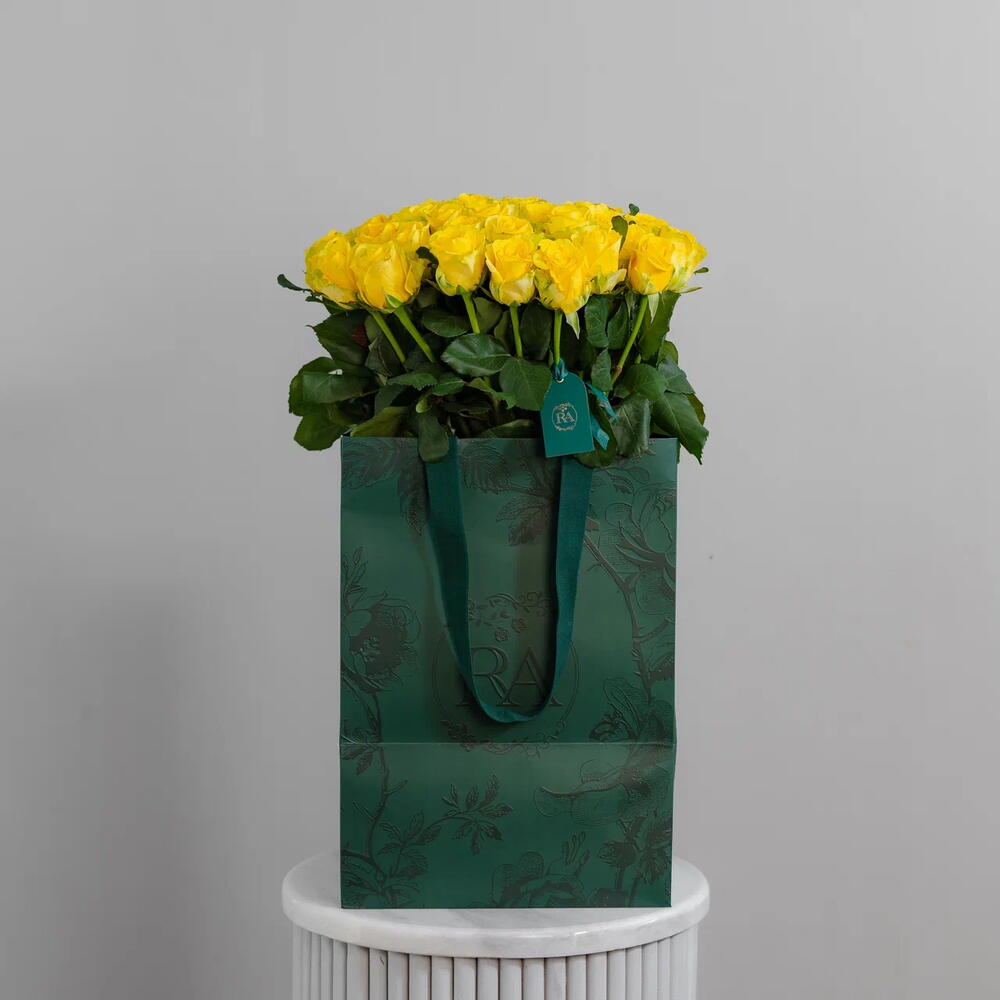 Un radiante ramo de 51 rosas amarillas premium, admiradas por sus largos tallos, grandes flores y su suave fragancia. Elaborado con la variedad Penny Lane, conocida por sus distintivos pétalos verde-amarillo que simbolizan alegría, agradecimiento y positividad. Un ramo de gracia dorada, perfecto para cumpleaños, felicitaciones, agradecimientos o deseos de pronta recuperación. También es una opción ideal para regalos de amistad, aniversarios o simplemente para alegrarle el día a alguien. ✅ Colección Gracia Dorada ✅ Entrega exprés en 1 hora (Dubái) ✅ Recién cortadas, entregadas a mano ✅ Rosas premium de tallo largo ✅ Flores fragantes ✅ Envío gratuito incluido