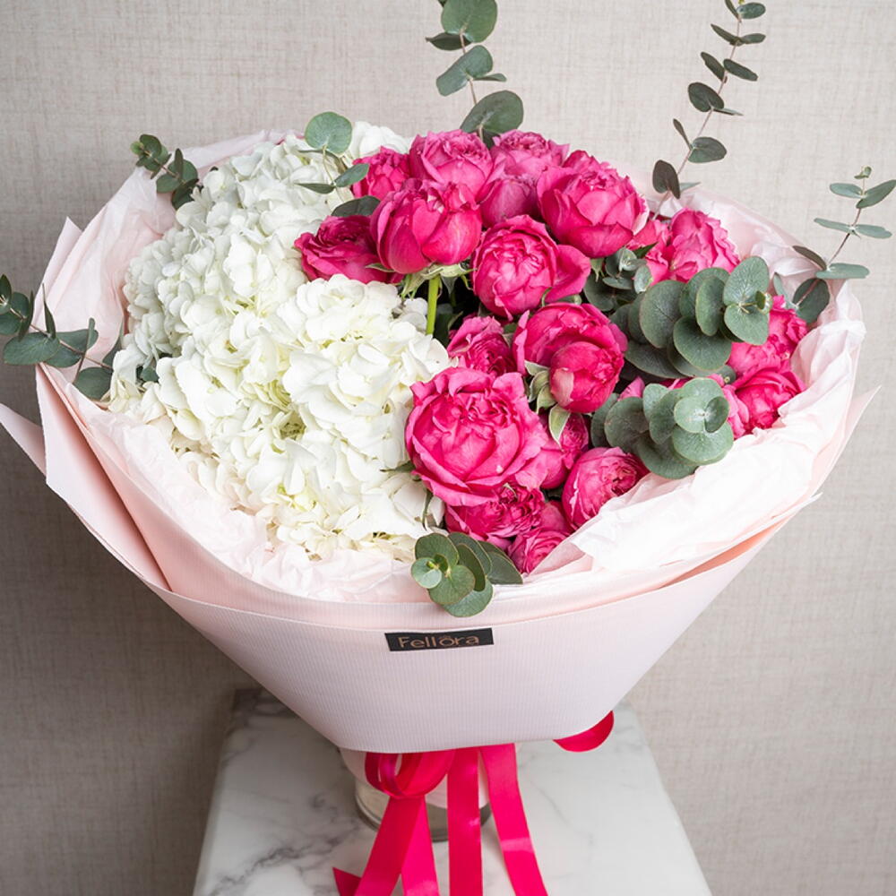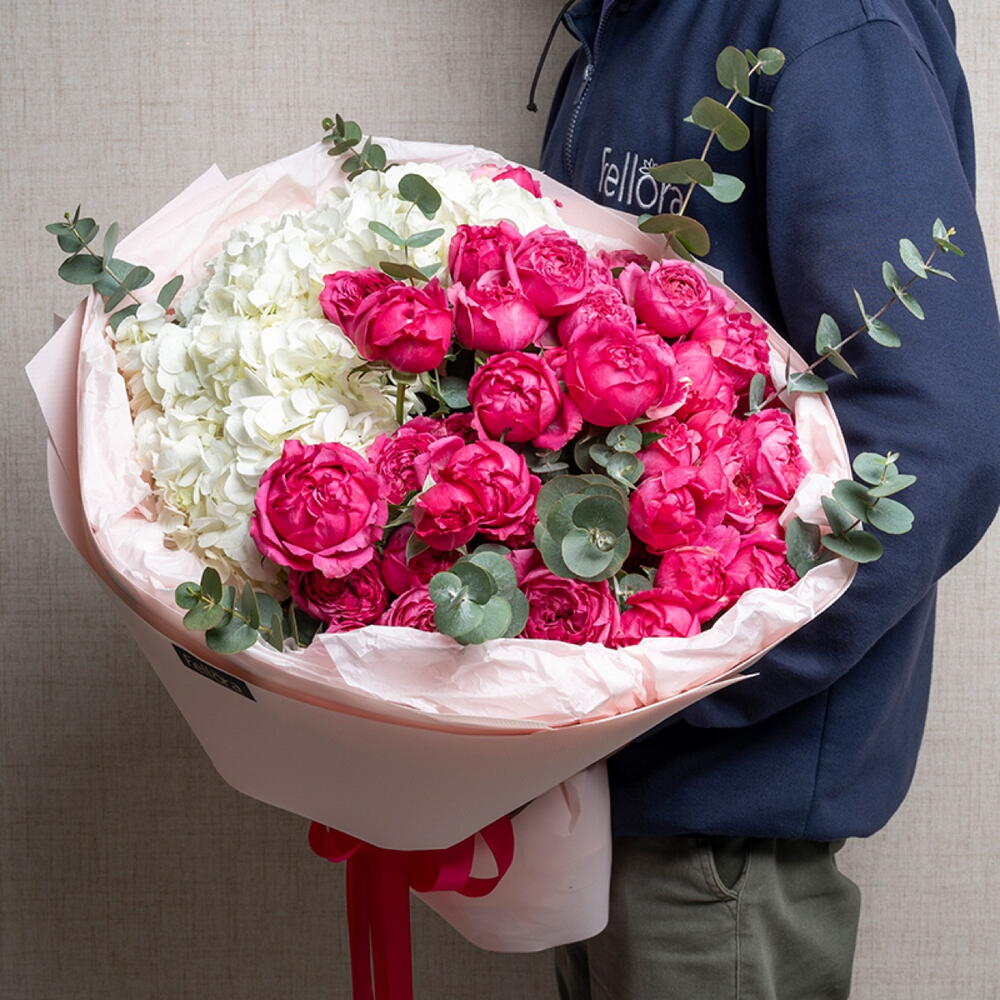 Ramo de hortensias y rosas peonía Julieta