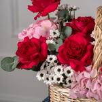 Eucalyptus - 3 ud. hydrangea pink - 3 ud. rosa fucsia - 6 ud. santini blanco - 7 ud.