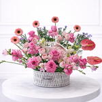 El Arreglo Sueño Rosado es un diseño floral lujoso y romántico creado para impresionar a primera vista. Presentado en una encantadora cesta blanca, este arreglo presenta una hermosa mezcla de tonos rosa suaves, acentos pastel y follaje fresco, que le confieren un aspecto elegante y de ensueño. Perfecto para aniversarios, cumpleaños, propuestas, felicitaciones o simplemente para expresar amor, este arreglo aporta gracia y encanto a cualquier espacio. Cada pieza está elaborada a mano por floristas expertos con flores frescas de primera calidad, garantizando una belleza duradera y un acabado refinado. Ya sea que envíes un regalo sentido o estés decorando un momento especial, el Arreglo Sueño Rosado se entrega fresco con un servicio fiable de entrega de ramos el mismo día en todo Dubái.