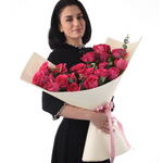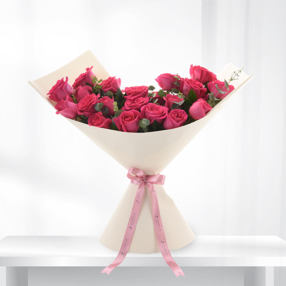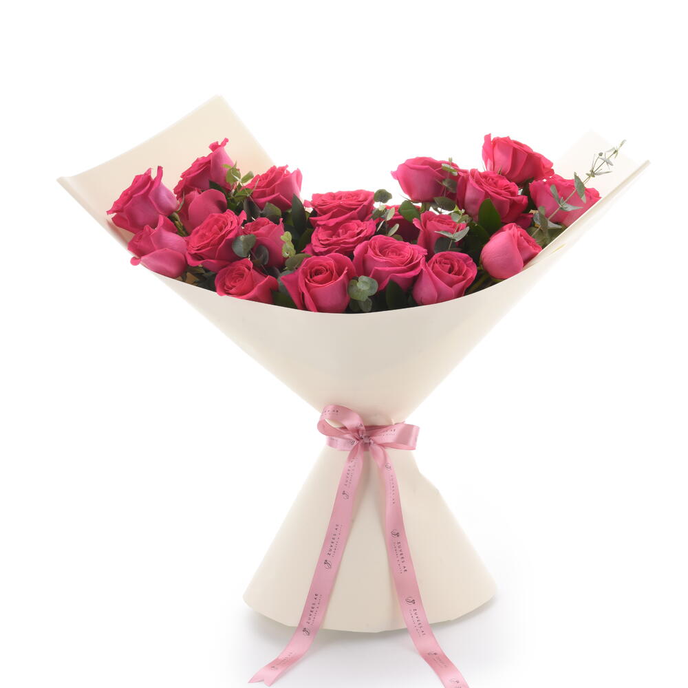 Ideal para: Cumpleaños, Aniversarios, Dedicatorias románticas, Felicitaciones, Día de la Madre, Expresar admiración Regalo perfecto para: Ella, Esposa, Novia, Mamá, Hermana, Amiga, Ser querido Disfrute de la cautivadora armonía de nuestro Ramo Sinfónico Pink Floyd. Este magnífico arreglo incluye 24 exquisitas Rosas Pink Floyd, reconocidas por sus vibrantes y lujosos pétalos y su robusta belleza, creando una presentación inolvidable. Cada flor se complementa con delicadeza con el delicado eucalipto y abundante follaje de ruscus, aportando una textura exuberante y un toque de elegancia natural. Arreglado con maestría y bellamente envuelto en un envoltorio premium de color crema, con un encantador lazo rosa, este ramo es una obra maestra diseñada para encantar e impresionar. Características principales: Una impresionante colección de 24 rosas premium Pink Floyd, conocidas por su vibrante tono rosado. Realzadas con fragante eucalipto (5 tallos) y exuberante follaje de ruscus (12 tallos). Elegantemente presentadas en un envoltorio premium de color crema. Aseguradas con un encantador listón rosa para un acabado sofisticado. Hechas a mano por maestros floristas, garantizan una presentación impecable y una frescura duradera. Perfectas para que cualquier celebración o detalle sea verdaderamente memorable.