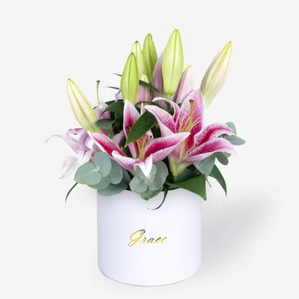 Lirios Rosados en Caja Pequeña