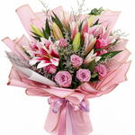 Ramo de lirios rosados y rosas | Elegante regalo floral