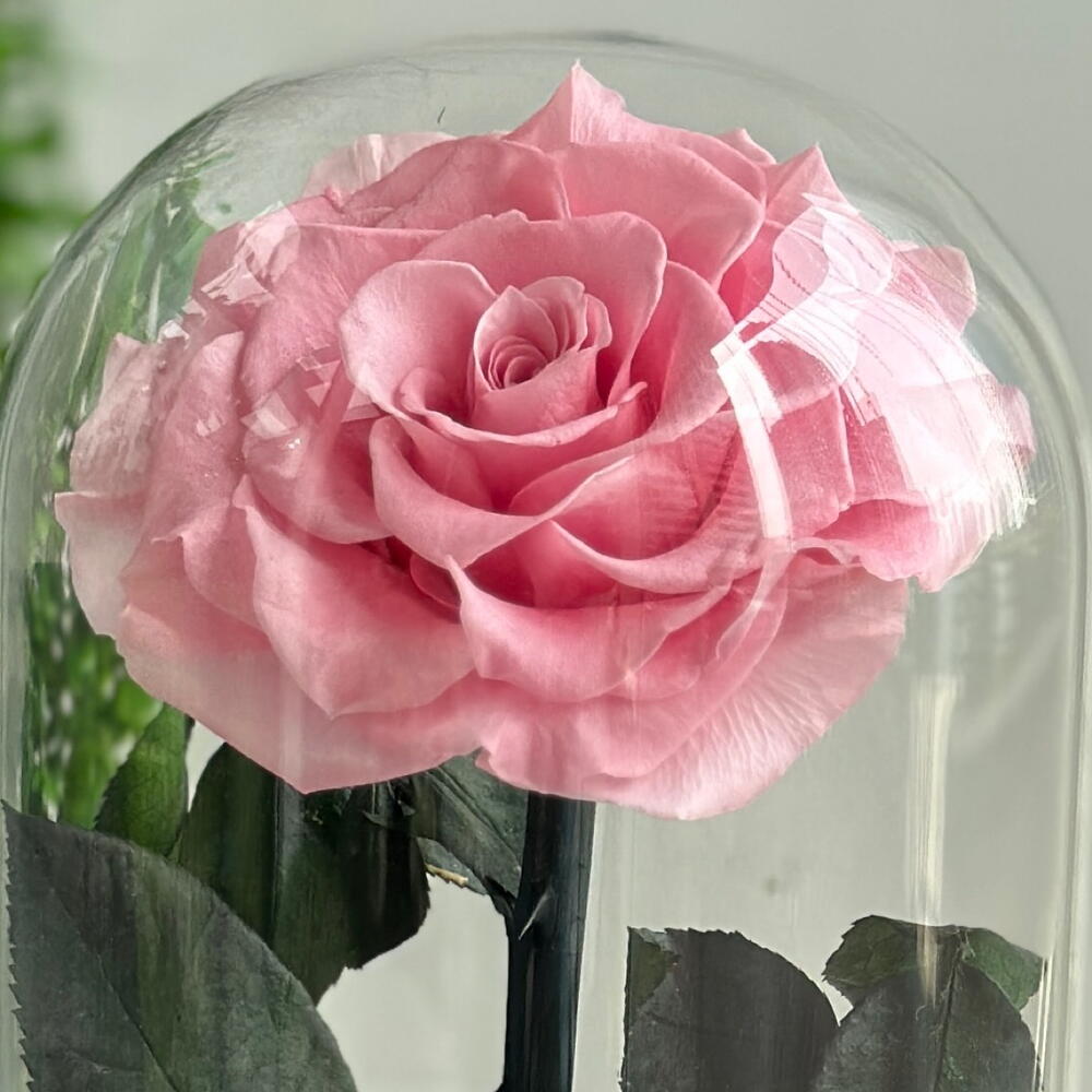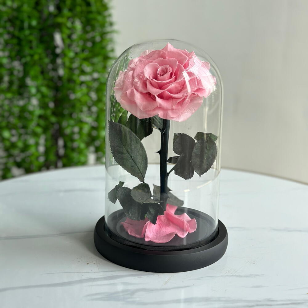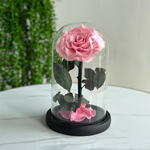 1 rosa Pink Forever en una cúpula de vidrio corta - Pequeña