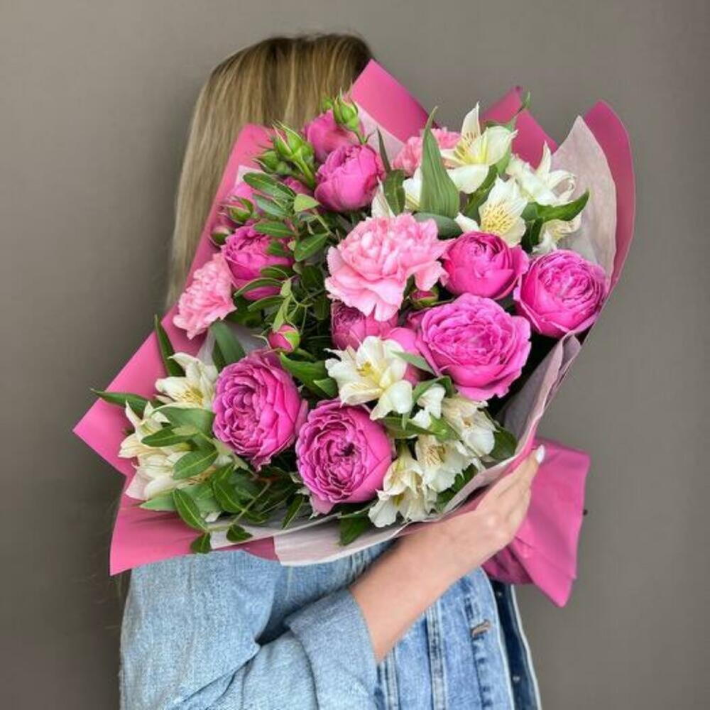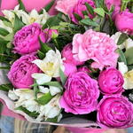 Add a touch of charm to any occasion with our bouquet. This enchanting arrangement features pink bush roses, vibrant pink dianthus, and elegant white alstroemeria. Together, they create a harmonious blend of colors and textures that exude grace and joy. Perfect for celebrating special moments or simply brightening someones day, this bouquet arrives beautifully arranged and ready to impress.