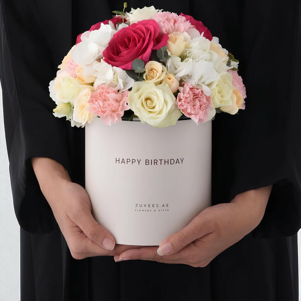 Presentado en una caja de recuerdo de lujo, esta exquisita composición floral viene acompañada de Raqiya Cashmeran Bakhoor de Rasasi (109g) — un toque cálido y aromático que realza la experiencia de regalar con una fragancia atemporal del Medio Oriente.