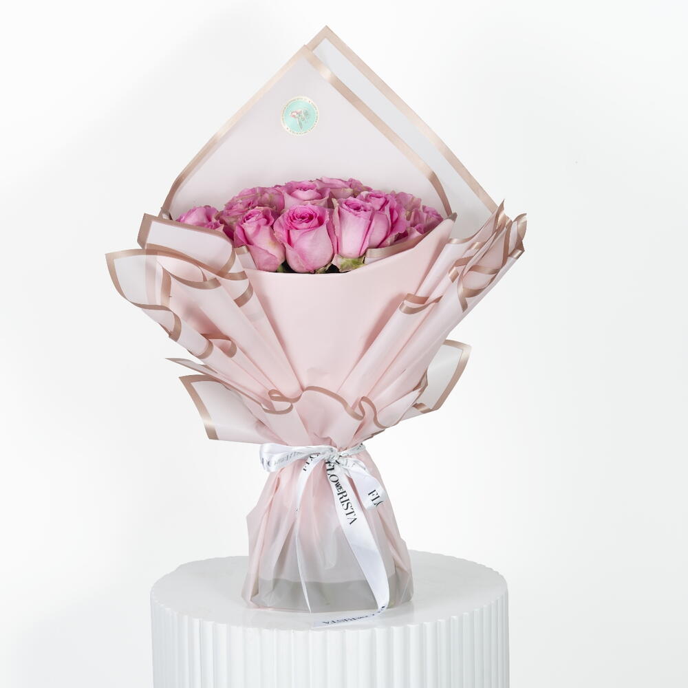 Hermosa elección para un regalo especial. El ramo incluye 12 rosas rosas premium y papel de envoltura decorativo.