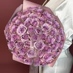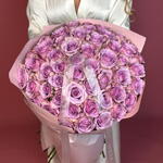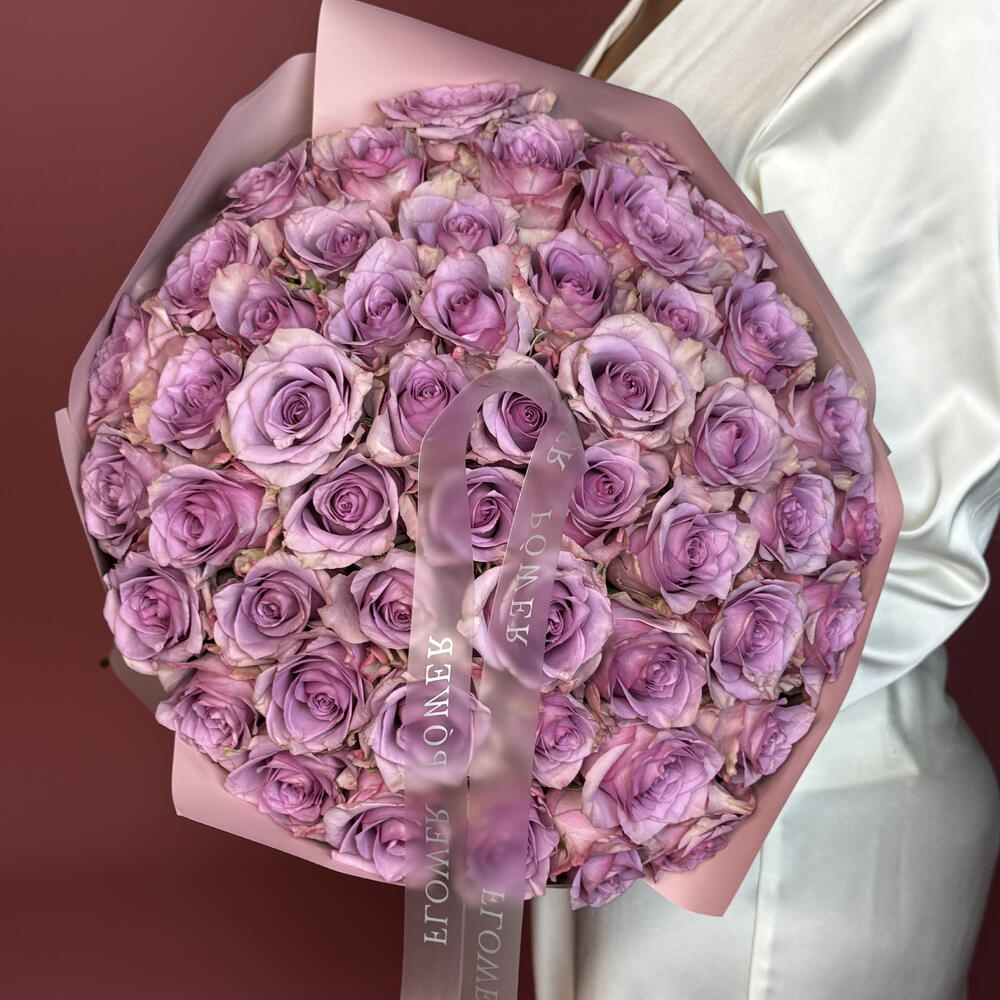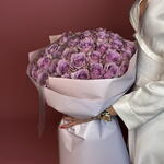 Un cautivador y lujoso ramo de 50 rosas lila, dispuesto con maestría para crear una composición exuberante y de ensueño. El tono lila único evoca encanto, primer amor y admiración, ofreciendo un toque de magia. Es un regalo impresionante e inolvidable, perfecto para cumpleaños, para agradecer o simplemente porque quieres expresar sentimientos profundos.