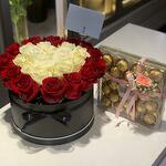 Red rose - 14 ud. White rose - 13 ud. ferrero rocher chocolates - 24 ud.