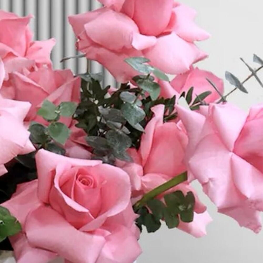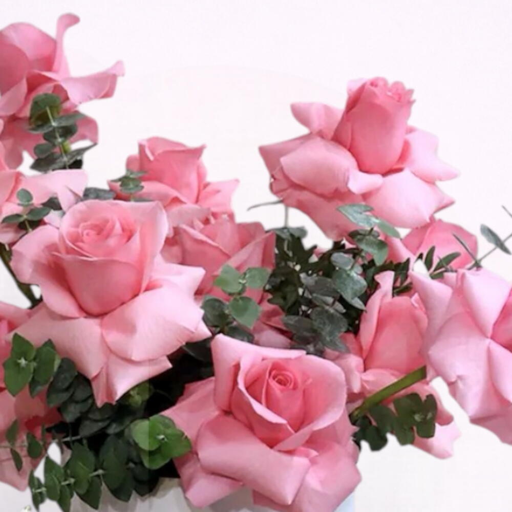 Eucalyptus - 10 ud. Box - 1 ud. rosas clásicas de color rosa - 21 ud.