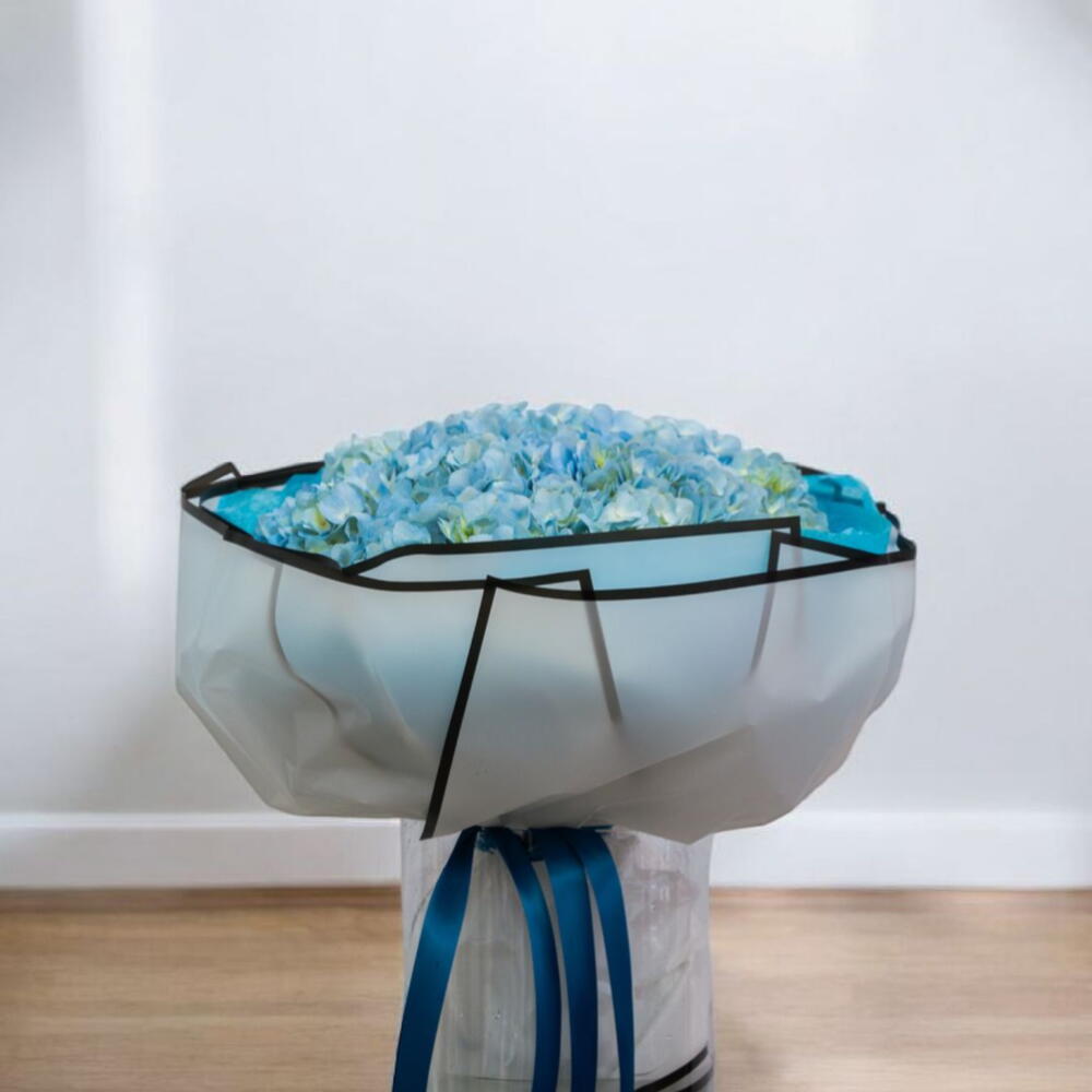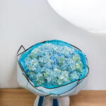 11 tallos de hortensias azules: Con sus exuberantes y voluminosas flores y cautivadores tonos azules, estas hortensias simbolizan gracia, comprensión y emociones sinceras, evocando la serenidad del océano. Detalles del arreglo: Este ramo, elaborado con maestría para realzar la belleza natural de las hortensias, está envuelto en elegantes tonos inspirados en el océano y rematado con una lujosa cinta para un toque sofisticado. Perfecto para celebraciones costeras, regalos especiales o para aportar serenidad a cualquier espacio, el ramo de flores Ocean Bloom es un homenaje atemporal a la elegancia de la naturaleza.