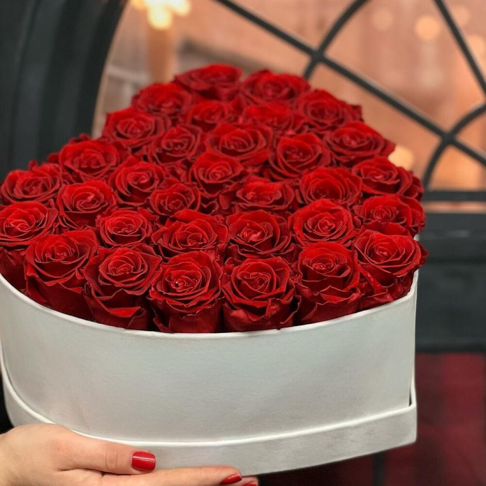 rose red - 35 ud. caja blanca en forma de corazón - 1 ud.