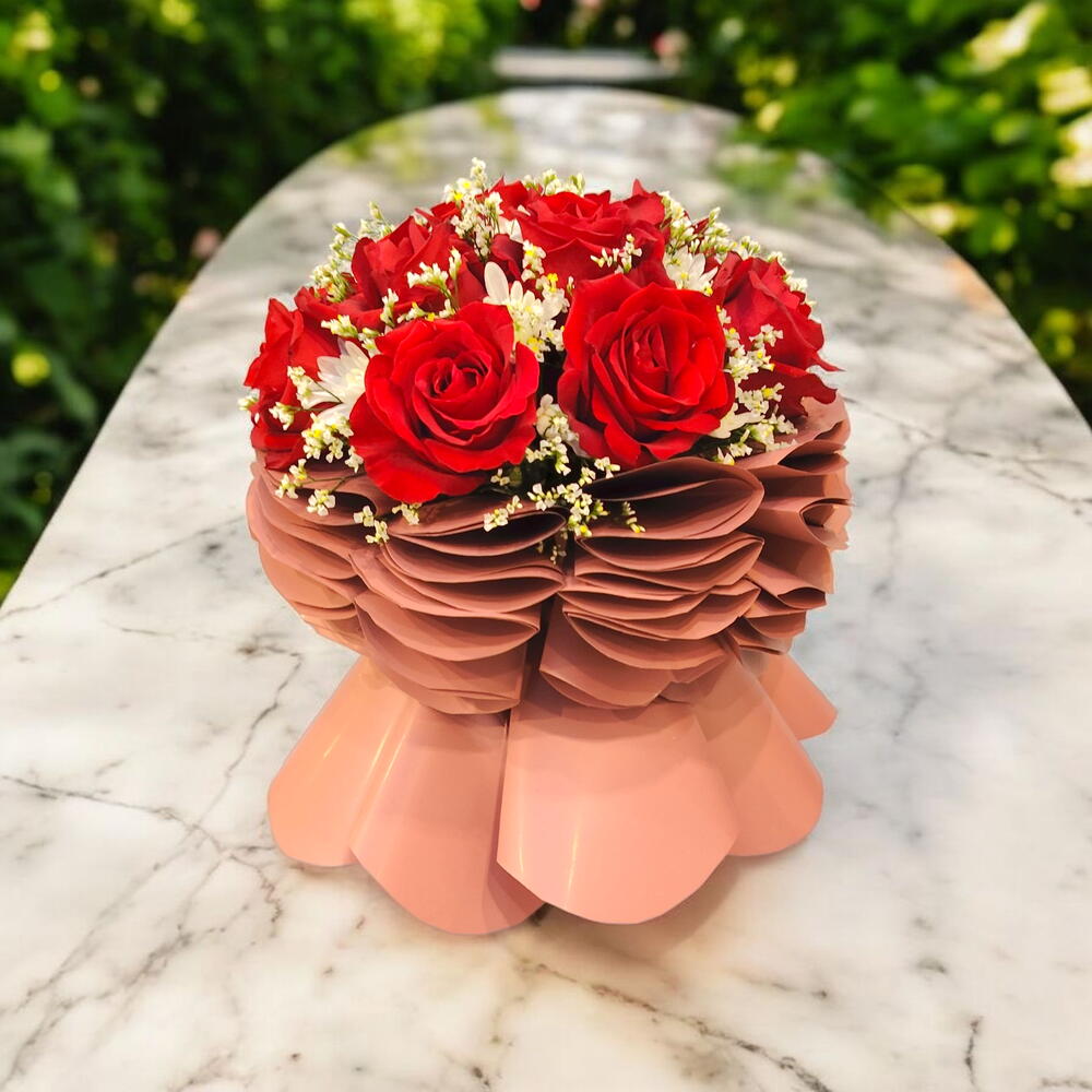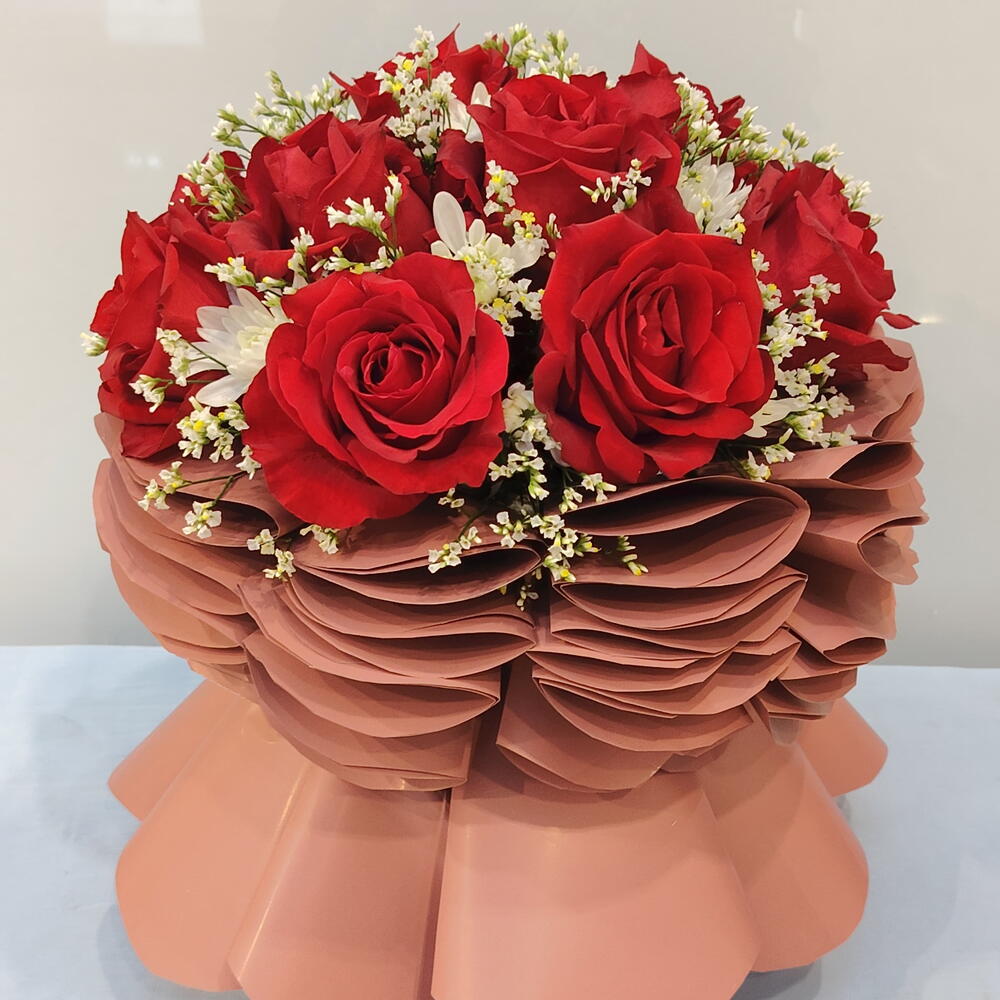 Por favor, mantenga el mismo diseño general del arreglo floral, pero permita la personalización. Los tipos de flores y los estilos de envoltorio pueden cambiarse según las sugerencias o preferencias del cliente.
