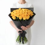 30 rosas amarillas en un envoltorio negro.