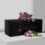 Un ramo de 10 rosas moradas frescas en una caja