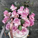 Purple Rose in Pink Hatbox Large