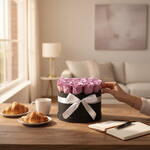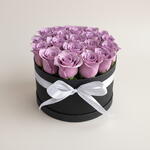 A bold and elegant arrangement of 21 premium purple roses, beautifully styled in a sleek black box and finished with a refined ribbon. Purple roses symbolize admiration and charm. These blooms are professionally treated for rich, lasting color, making them ideal for birthdays, anniversaries, luxury gifting, and statement moments. Designed to impress from the first glance.