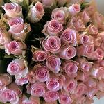rosa lila clara - 70 ud. envoltura blanca - 5 ud. cinta morada - 2 ud.