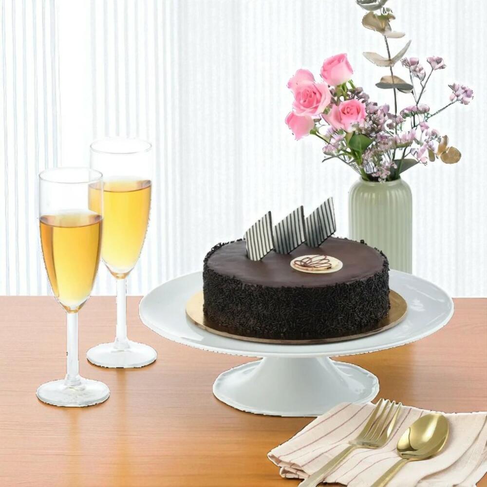 Ilumina su día especial con el Paquete de Cumpleaños Radiant Rhapsody, un conjunto de celebración vibrante que presenta un impresionante ramo de 18 rosas multicolor en tonos amarillo, morado y blanco, cuidadosamente atado a mano con verdes de eucalipto. Envuelto en un papel negro intenso y asegurado con una suave cinta de satén blanca, este llamativo ramo viene acompañado de un kit completo para fiesta de cumpleaños que brinda alegría sin esfuerzo. Incluye un pastel decadente de chocolate de medio kilo, un gorro de cumpleaños, velas, un petardo de confeti y una tarjeta de felicitación pensada – todo lo que necesitas para convertir cualquier momento en una celebración por todo lo alto. Consejos de cuidado: Mantén las flores en un lugar fresco, alejado de la luz solar directa y de corrientes de aire. Si las trasladas a un jarrón, corta los tallos en diagonal y colócalos en agua fresca con alimento para flores. Cambia el agua cada dos días y retira cualquier pétalo marchito para prolongar la frescura. Conserva el pastel en un lugar fresco y seco y consúmelo dentro de las 24 horas para un mejor sabor.