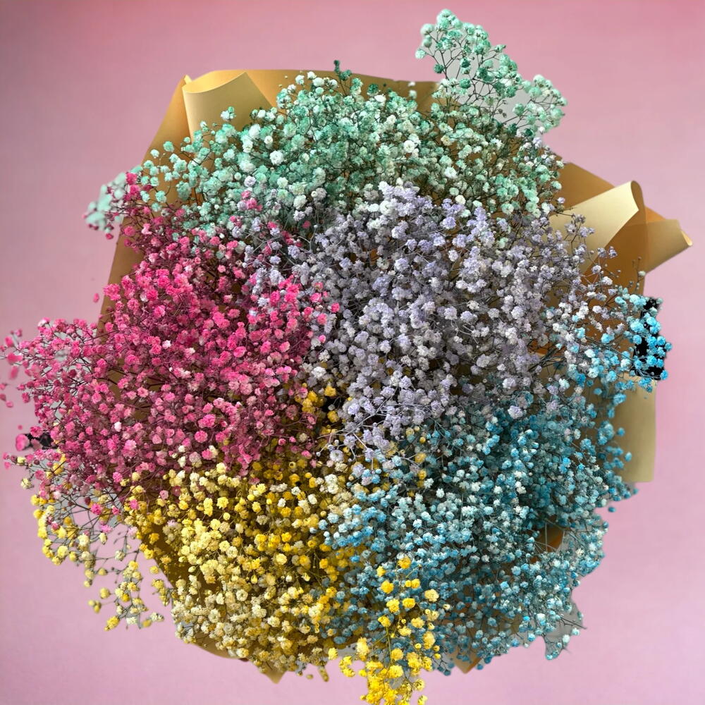 Desata la magia del Ramo Nube Arcoíris – una explosión de color hipnotizante que imita un arcoíris en las nubes. Colores deslumbrantes: Irradia siete tonos vibrantes, evocadores de un arcoíris. Flores con aspecto de nube: Delicadas flores inspiradas en las nubes aportan un encanto etéreo. Artesanía: Meticulosamente dispuestas por manos expertas para lograr una combinación perfecta. De larga duración: Frescura garantizada, aportando alegría durante un período prolongado. Simbología universal: Ideal para celebrar el amor, la unidad y la felicidad.