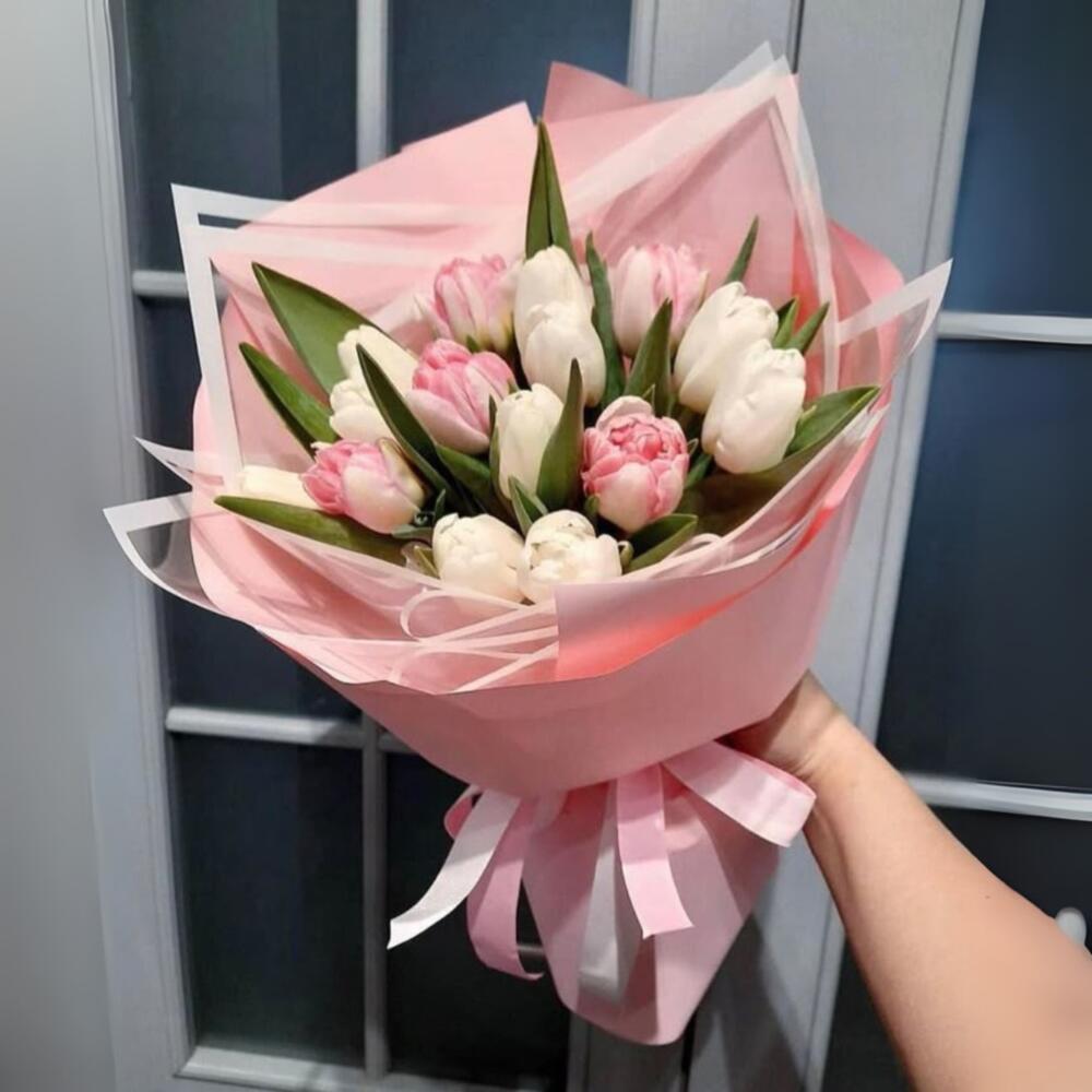 pink tulips - 5 ud. white tulips - 9 ud.