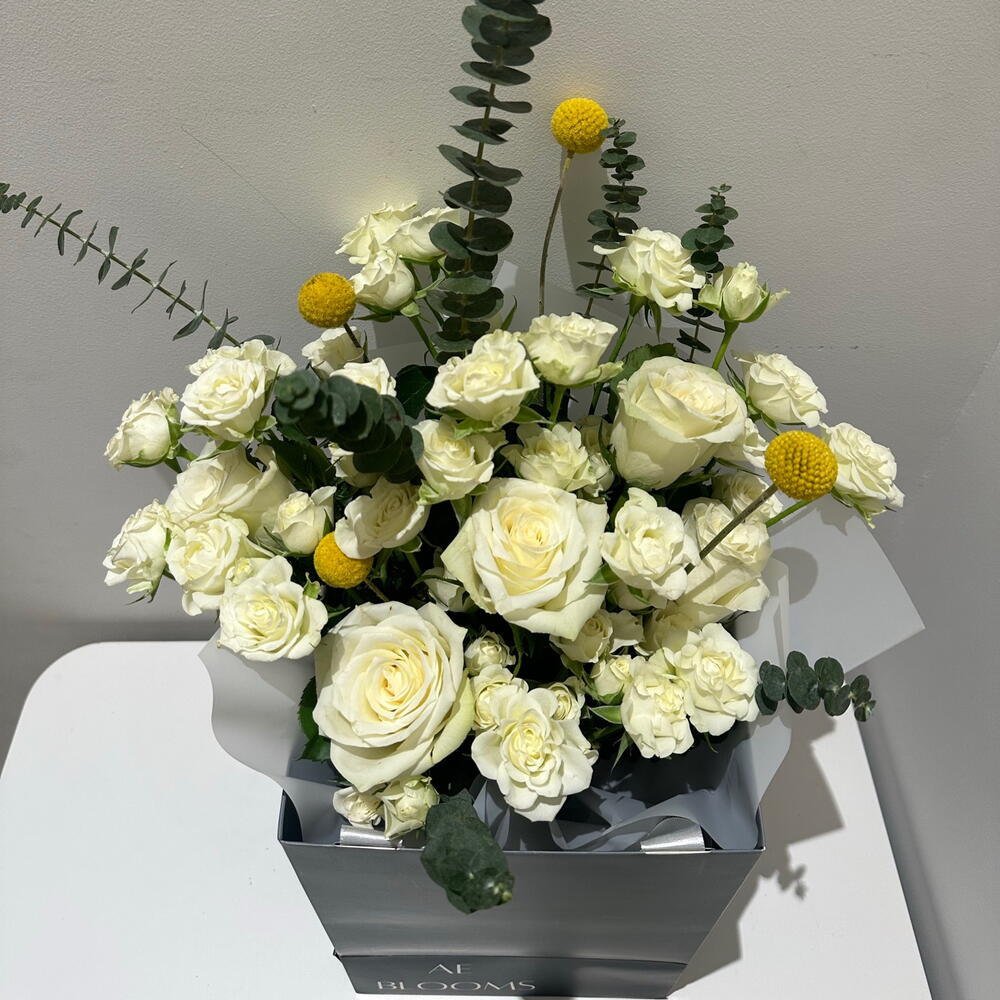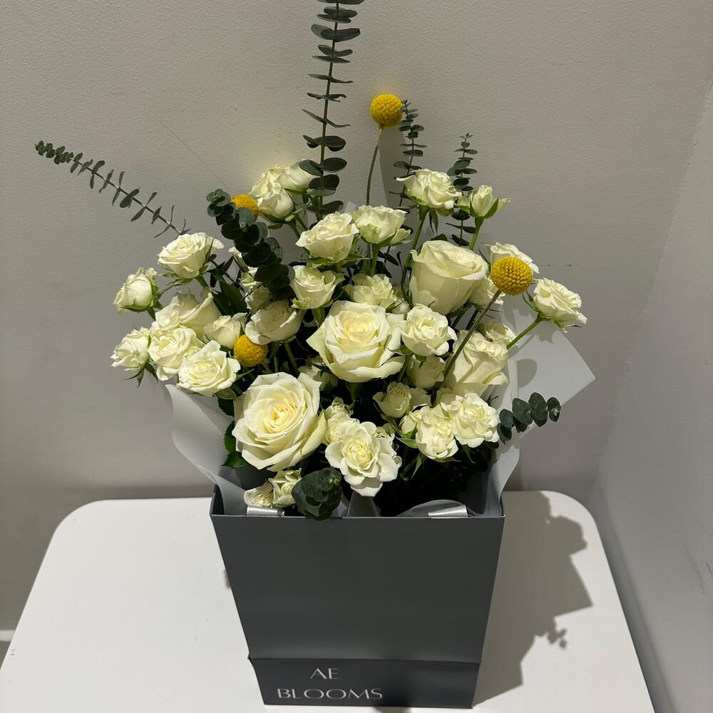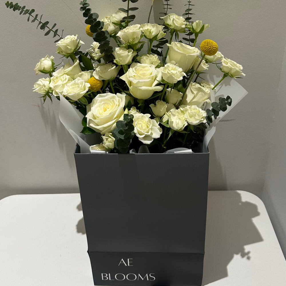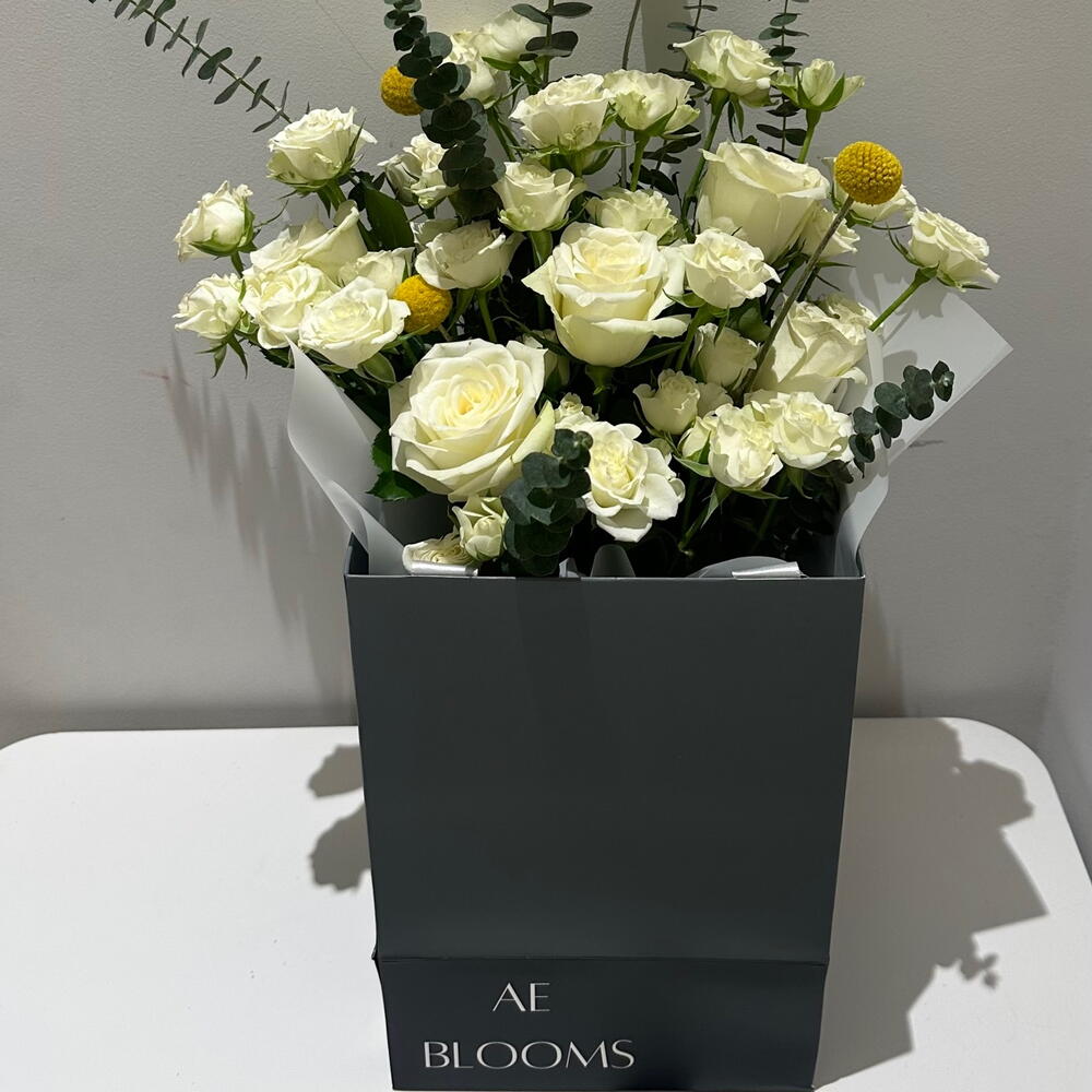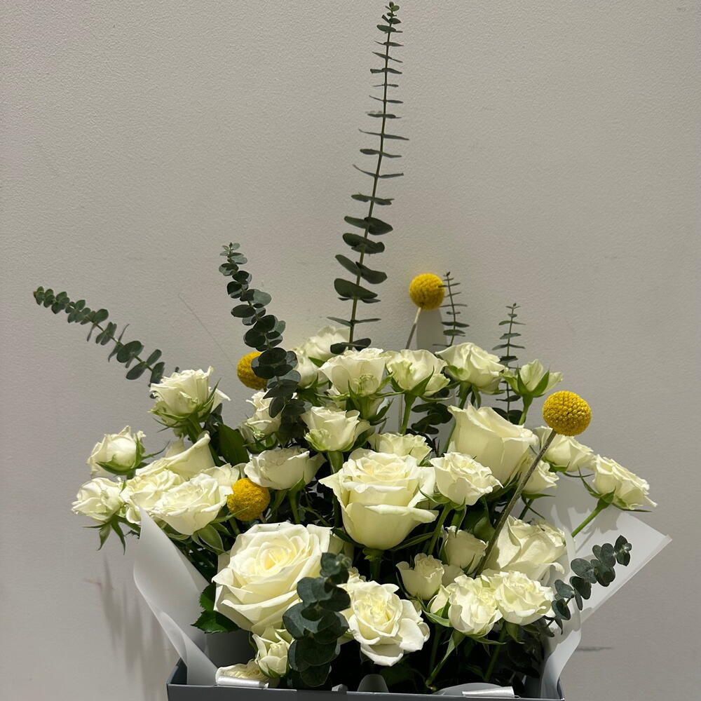 rose - 5 ud. craspedia - 4 ud. rosa bebé - 8 ud.