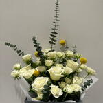 Este impresionante Ramo Mono combina sin esfuerzo la elegancia atemporal de 5 exuberantes rosas y 8 delicadas mini rosas, perfectamente acentuadas por 4 vibrantes craspedias. Un deleite visual, este ramo captura la belleza de las flores de la naturaleza y sin duda añadirá un toque de encanto a cualquier lugar donde lo coloques. Ideal para regalar o para realzar la estética de tu hogar.