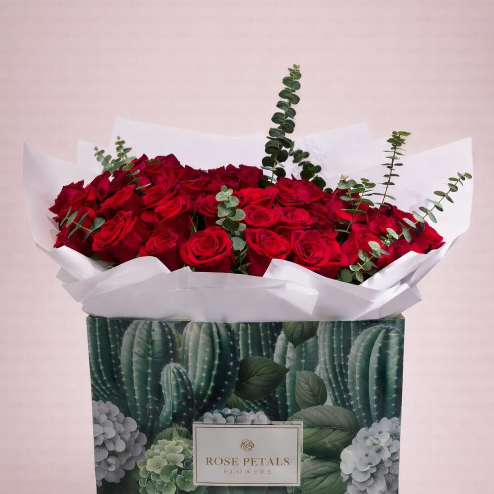 Green leaves - 5 ud. red roses - 51 ud.