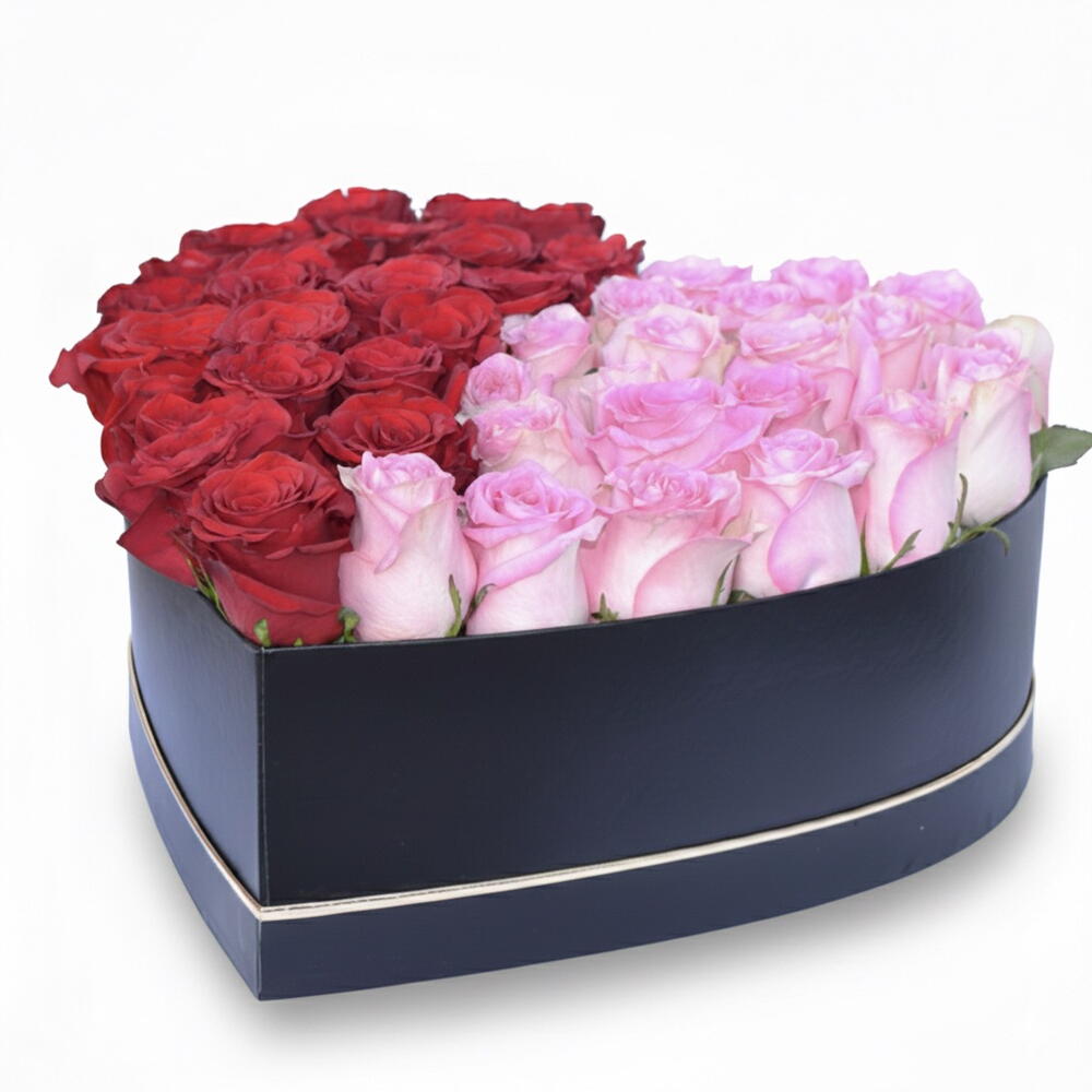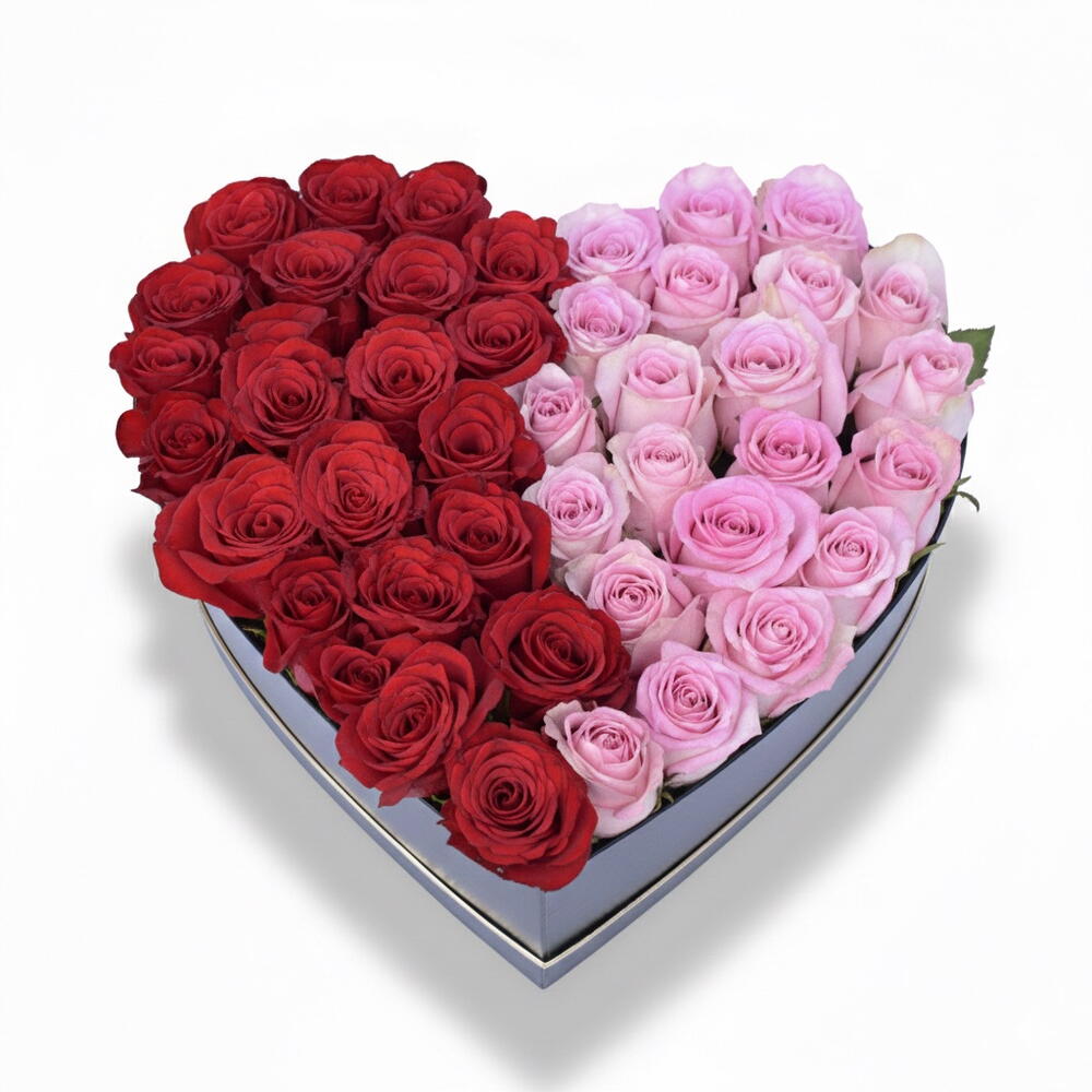 Esta romántica Caja de Rosas Rojas – arreglo de lujo en forma de corazón rojo y rosa – está confeccionada con 51 rosas frescas de primera calidad, diseñadas en un corazón de forma perfectamente proporcionada. El corazón está elegantemente dividido en dos mitades equilibradas: rosas rojas en un lado que simbolizan la pasión profunda y el amor, y rosas rosadas en el otro que representan la admiración, la dulzura y el afecto. Las rosas están dispuestas de forma compacta para crear una forma de corazón limpia y completa y se colocan dentro de una elegante caja de lujo con forma de corazón, lo que le aporta al arreglo un acabado refinado y de alta gama. Cada rosa es seleccionada a mano para asegurar frescura, tamaño uniforme y color intenso, haciendo que el diseño sea visualmente impactante y emocionalmente significativo. Este arreglo es ideal para el Día de San Valentín, aniversarios, sorpresas románticas, propuestas o regalos de lujo, ofreciendo un mensaje sincero en una forma compacta pero de gran impacto. Detalles exactos del producto: • Total de rosas: 51 rosas frescas • Desglose de rosas: 26 rosas rojas + 25 rosas rosadas • Diseño: corazón mitad rojo – mitad rosa • Tipo de caja: caja de lujo con forma de corazón • Estilo: romántico, elegante, premium • Ocasiones: Día de San Valentín, aniversario, propuesta, regalo romántico Una caja de rosas en forma de corazón bellamente equilibrada que expresa tanto pasión como ternura—perfecta para momentos que merecen algo realmente especial.