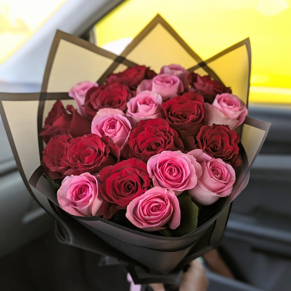 Ramo de rosas rojas y rosadas adecuado para cualquier ocasión.