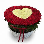 Cesta de rosas rojas – 501 rosas rojas y blancas con corazón blanco Arreglo de lujo