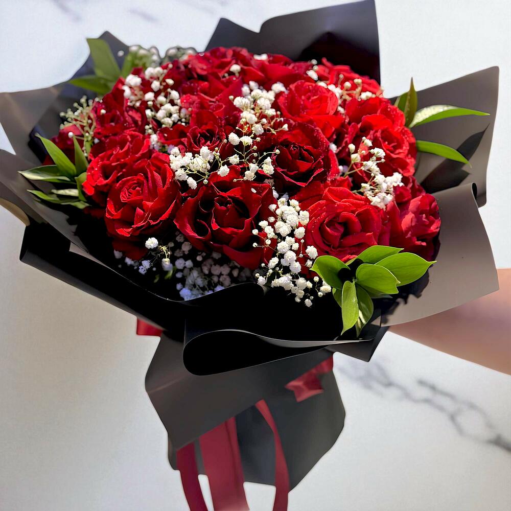 Deléitate con la elegancia clásica de este exquisito ramo monofloral, elaborado con pasión con 20 rosas rojas aterciopeladas. Cada flor, seleccionada a mano por su notable belleza y riqueza de color, convierte este ramo en una espectacular expresión de amor y aprecio. Una elección perfecta para ocasiones memorables o simplemente para alegrarle el día a alguien.