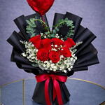 Satin ribbon - 1 ud. Gypsophila - 5 ud. red roses - 7 ud. globo metálico en forma de corazón - 1 ud.