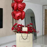 bolsa o caja - 1 ud. rosas rojas premium - 50 ud. perfume jo malone 100 ml - 1 ud.