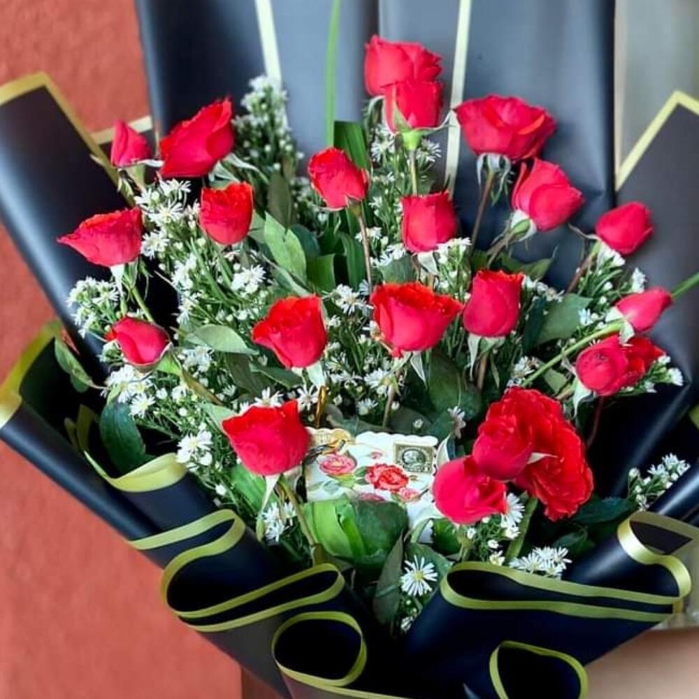 Red rose - 19 ud. Limonium - 9 ud.