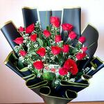 Ramo de flores gigante estilo lazo para impresionar. Está disponible una amplia variedad de combinaciones de colores: Rosas rojas & papel de envolver negro; Rosas blancas & papel de envolver dorado; Rosas rosadas & papel de envolver rosa.