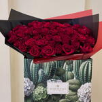 Experimenta la máxima expresión del amor y la admiración con este impresionante Mono Bouquet, compuesto por exactamente 101 encantadoras rosas rojas. Cada rosa ha sido cuidadosamente seleccionada a mano por su color vibrante y su encantadora floración; juntas se entrelazan para crear un cautivador conjunto de belleza. Este imponente ramo, que exhibe una sofisticación y grandeza incomparables, es perfecto para expresar tus sentimientos más profundos o para celebrar las ocasiones más grandiosas.