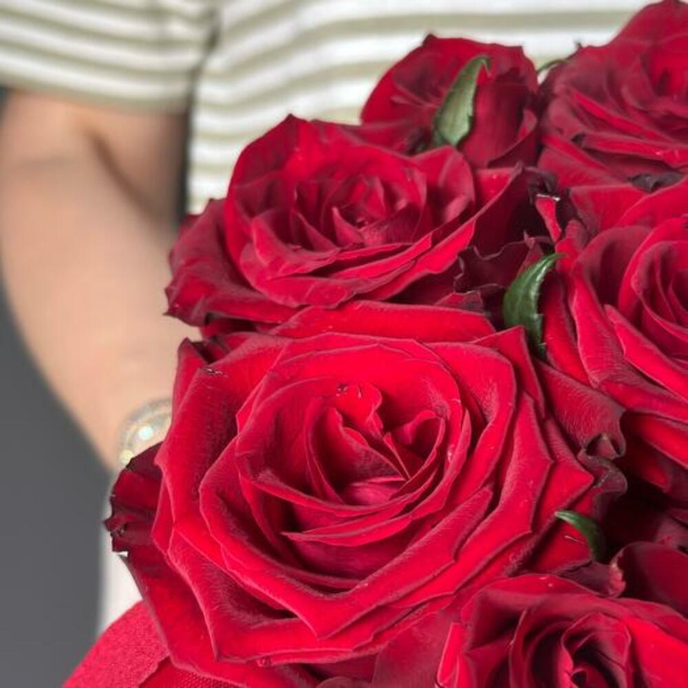 Abraza el lujo con nuestro ramo de rosas rojas elegantemente presentado en una caja de sombrero blanca. Este impresionante arreglo presenta una colección de vibrantes rosas rojas meticulosamente dispuestas para transmitir pasión y sofisticación. Perfecto para celebrar momentos especiales o expresar sentimientos sinceros.