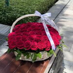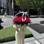 Sumérgete en el encanto cautivador que aporta esta cesta que contiene 50 exuberantes rosas rojas. Perfectamente curada, cada flor muestra amor y sofisticación, lo que la convierte en un regalo idílico para tus seres queridos en cualquier ocasión. Enfatizando la belleza y la pasión, este opulento arreglo floral sin duda hará una declaración impactante.