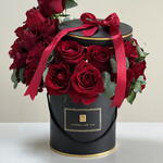 Experimente la elegancia de esta exquisita caja de flores que realza el encanto dramático de 20 vibrantes rosas rojas. Su lujoso diseño se complementa con un refinado lazo y se encuentra delicadamente entre aromáticas hojas de eucalipto, encapsulando a la perfección un mensaje de amor, pasión y respeto. Este arreglo floral atemporal no es un regalo cualquiera, sino un símbolo impresionante de su afecto. ¡Deje que esta hermosa caja de flores, cuidadosamente seleccionada, exprese sus sentimientos!