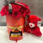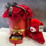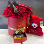 Red rose - 20 ud. Teddy bear - 1 ud. kunafa de chocolate - 6 ud.