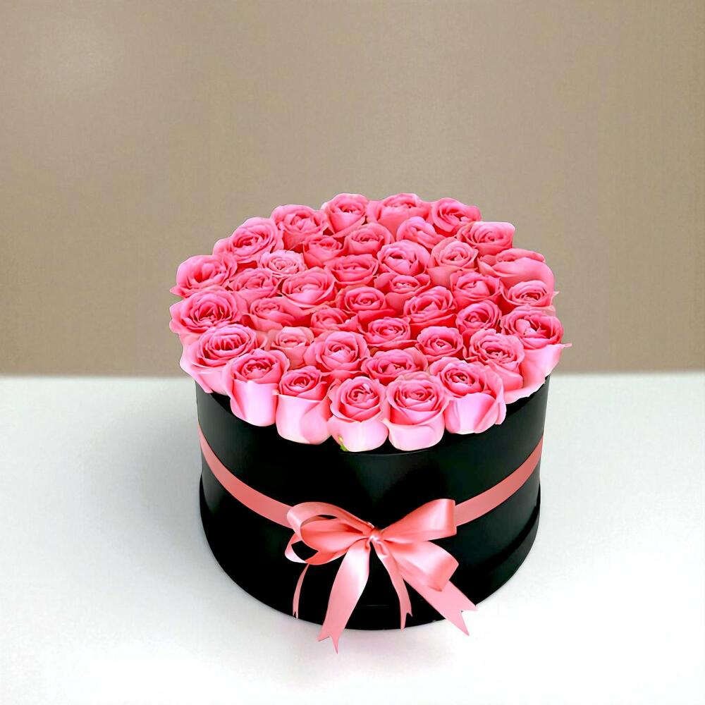 Descripción - Arreglo de 25 rosas Pink Revival en caja redonda negra Tamaño - 20.5*20.5*9