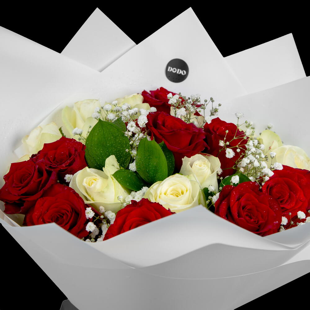 Armonía romántica de rosas rojas y blancas mezcladas