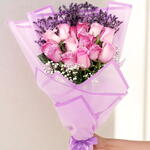 Deléitate con el suave encanto de este elegante ramo de rosas rosadas envuelto en una delicada envoltura de tono lavanda. El suave rubor de las rosas se complementa perfectamente con ramitas de statice púrpura y la etérea gypsophila blanca, creando un arreglo romántico y atemporal. Este ramo es un regalo ideal para expresar amor, admiración o gratitud. Ya sea para un cumpleaños, un aniversario o un momento especial simplemente porque sí, seguro que provocará una sonrisa. Para garantizar una belleza duradera, coloca el ramo en un jarrón limpio con agua fresca, cortando los tallos en diagonal. Cambia el agua diariamente y mantén el ramo alejado de la luz solar directa y de fuentes de calor. Con los cuidados adecuados, las rosas se mantendrán frescas y hermosas durante 5-7 días.