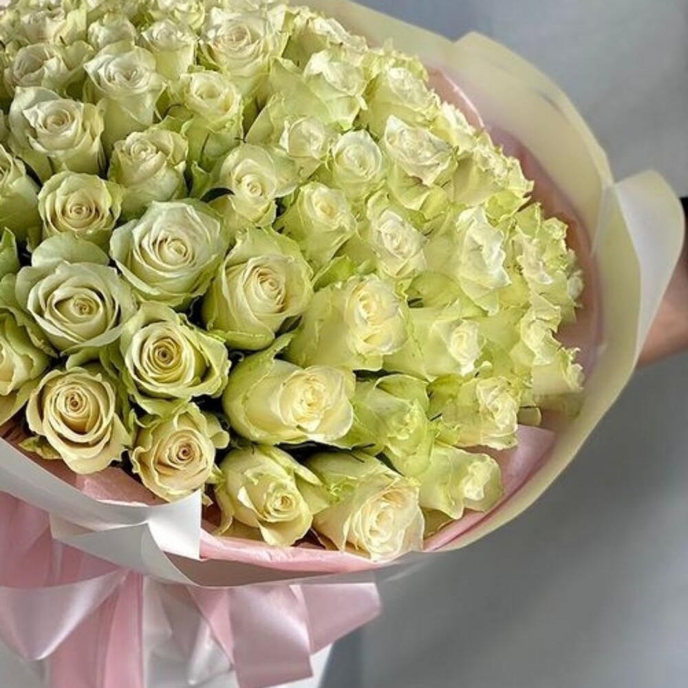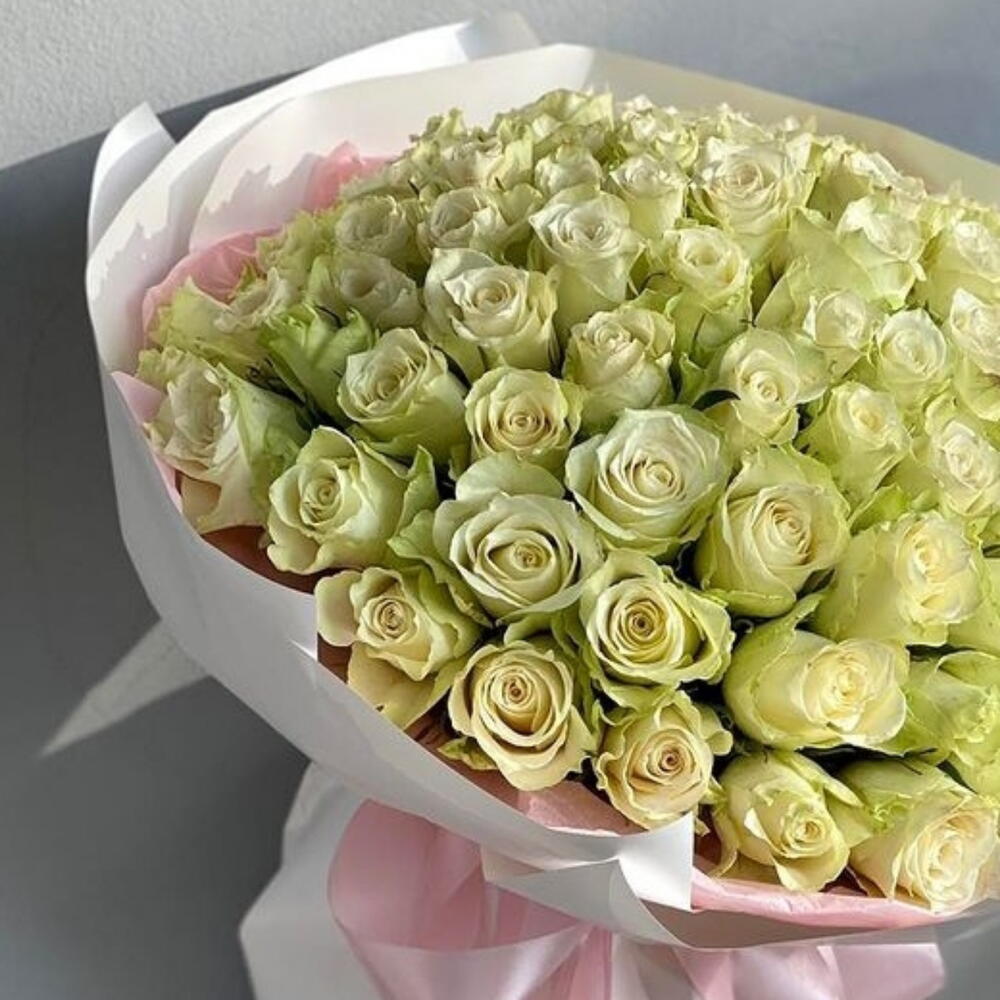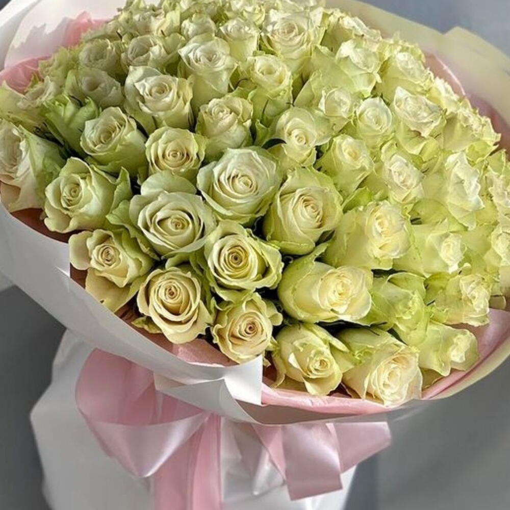 White rose - 60 ud. envoltorio blanco - 5 ud. cinta rosa claro - 2 ud. rabink rosa - 3 ud.