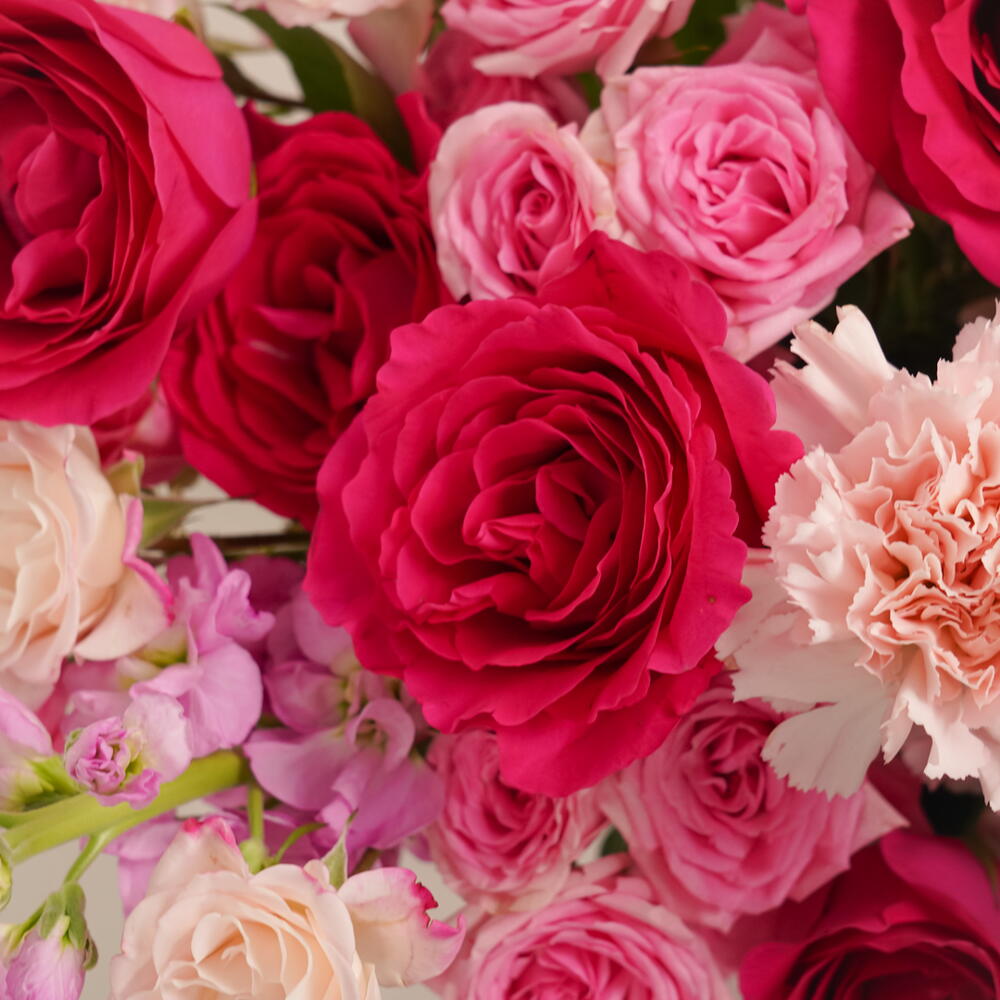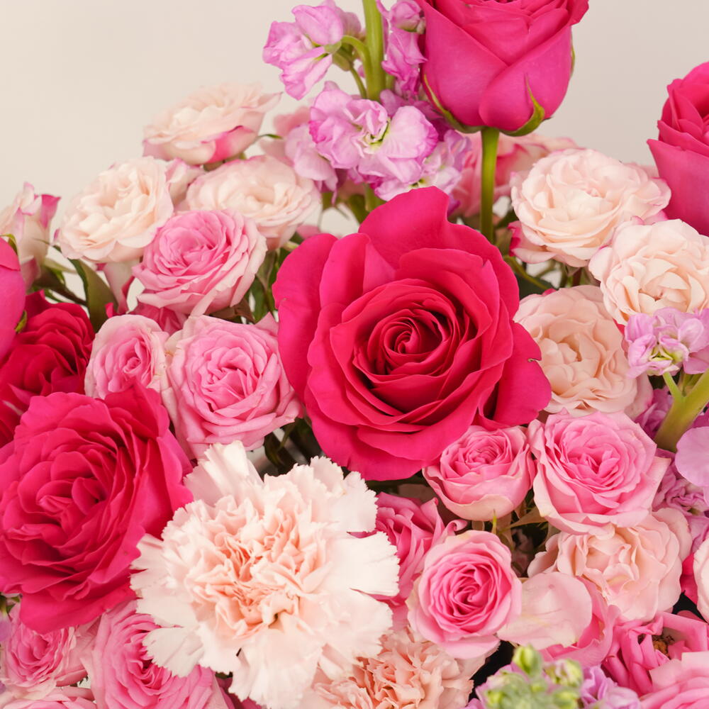 rose pink - 10 ud. carnation pink - 10 ud. spray rose pink - 10 ud. alhelí rosa - 5 ud. zezzle caja rosa redonda - 1 ud. rosa fucsia - 10 ud.