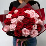 21 Light Pink Rose, 20 Red Rose in a red transparent wrapping,