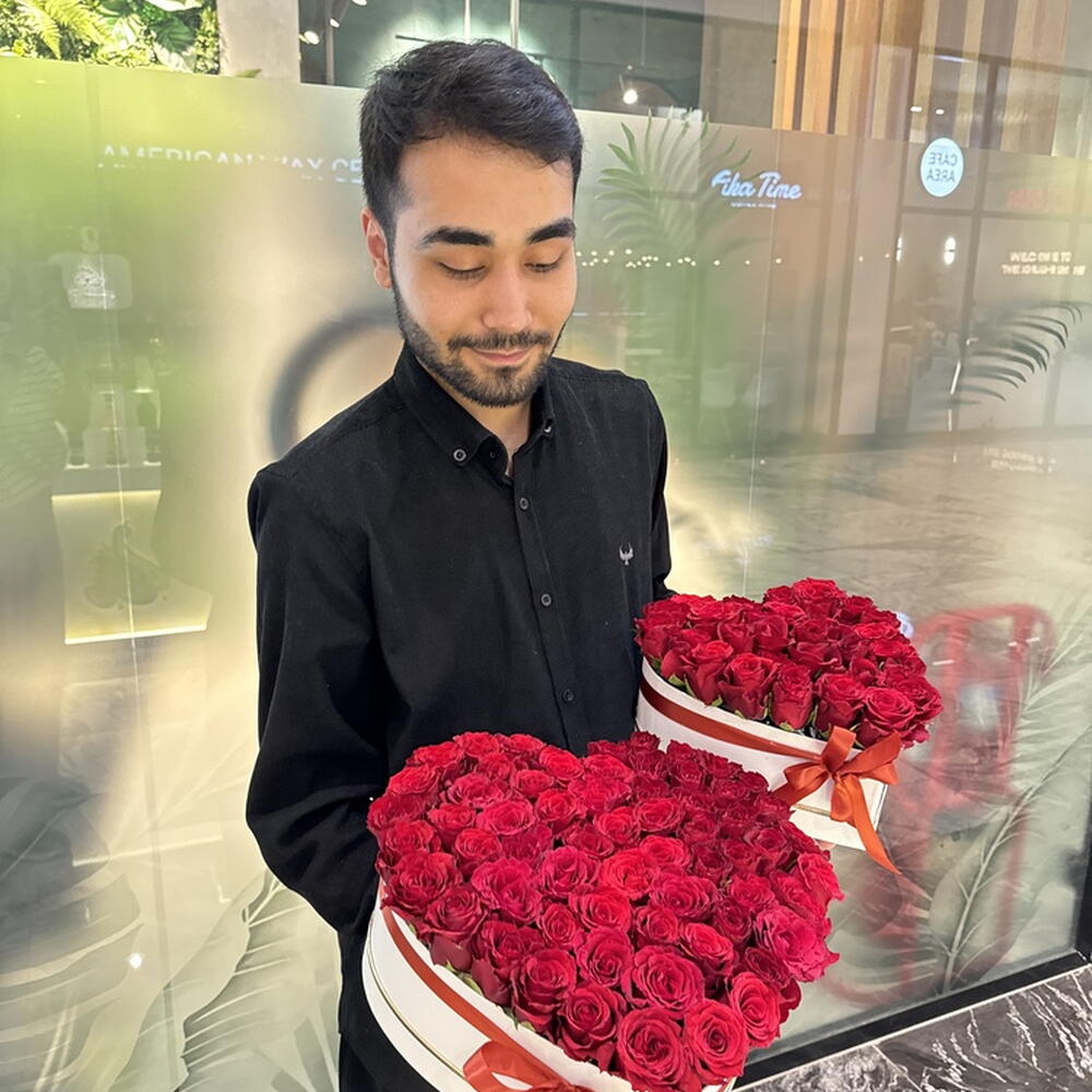 Composition: Rose red - 27, box - 1 Sizes: WIDTH - 25CM; HEIGHT - 25CM; LENGTH - 25CM; (including packaging) Размер: 25 x 25 x 25 см