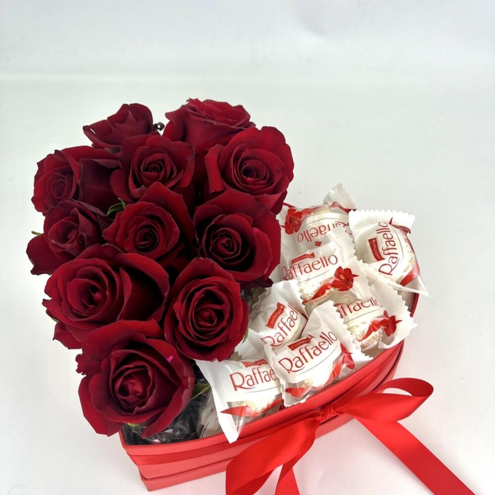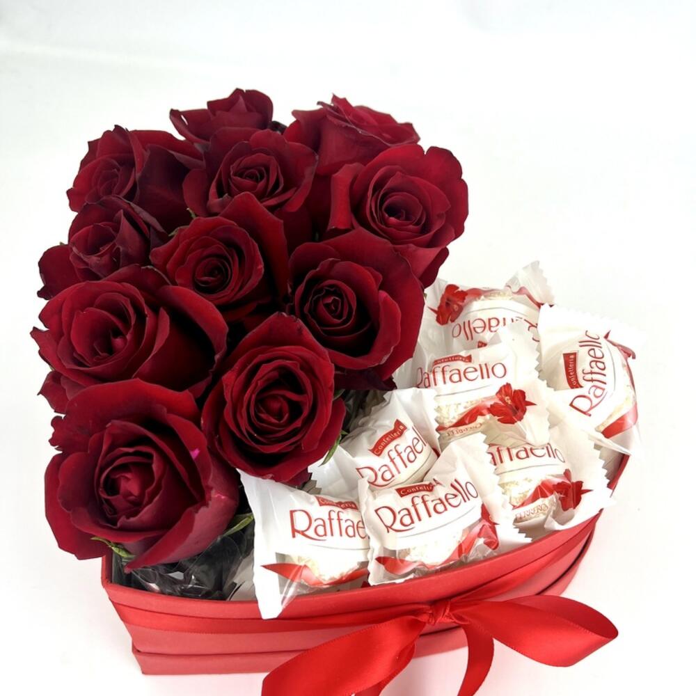 Box - 1 ud. rose red - 11 ud. Oasis - 1 ud. chocolate Raffaello - 7 ud.